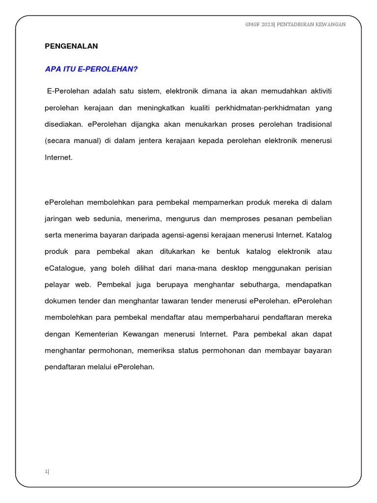 Https Epl Penang Gov My App Course Attachments Perolehan 20kerajaan 202018 20intura Pdf from 2.7 apa itu hrd sebenarnya? Oleh itu, setiap pembelian hendaklah memberi pulangan • terbaik bagi setiap ringgit yang dibelanjakan. Pengetahuan adalah informasi yang di dapat untuk memperoleh pemahaman , pembelajaran dan pengalaman. Eperolehan juga berperananan sebagai salah satu cara untuk para pembekal mendaftar dan memperbaharui sijil kementerian. Dayang arfahiza binti abang junaidi. Apa yang dimaksudkan perolehan kerajaan? Perolehan juga merupakan istilah yang digunakan untuk pembelian barangan dan perkhidmatan bagi pihak kerajaan. Perolehan • hendaklah dibuat melalui perbandingan harga dan • rundingan.